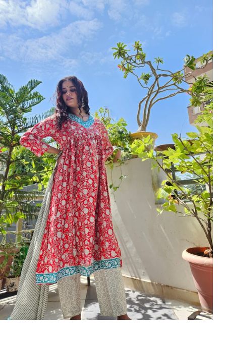 Anarkali Floral Printed Suit Set with Dupatta