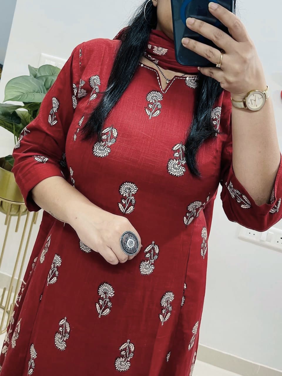 - Pure Cotton discharge print kurti with pant and mulmul printed dupatta.